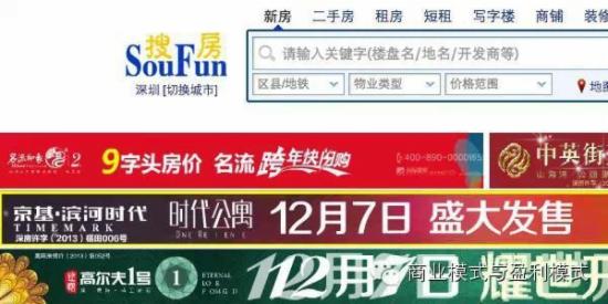 广告可能是互联网上最常见的盈利方式了。在新浪、腾讯网等门户网站上,我们经常能够看到各种banner广告;在类似新浪乐居、搜房网等无节操的房地产门户上面,则是广告满天飞,有时候会占据你大半屏的空间。这种广告的原理即盈利方式跟地铁站、街边的广告牌本质上没有区别。