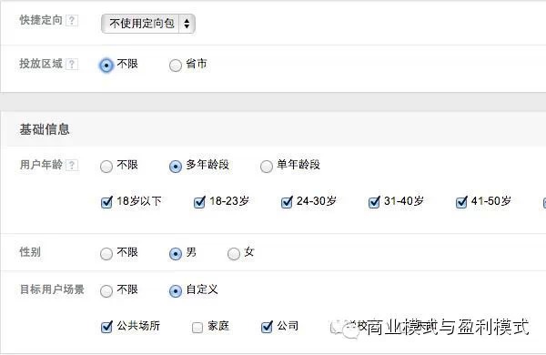 上图:在腾讯广点通投放系统中,可以对广告受众进行精确的定向,只让你的目标用户看到你的广告