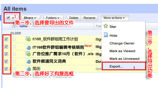 如果Google退出中国,用户保存在Google文件里的文件很有可能无法使用。本身it168软件频道就在使用Google文档,安排每周的工作和写总结,相信国内还有很多用户也是一样的情况。Google文件目前支持在线文件的导出功能,大家可以按照下面的图例导出自己的文档。由于Google文件是多人共享使用的,如果你看到了这篇文章,麻烦也尽快通知下,和你同时共享这个文档的朋友,以防万一!