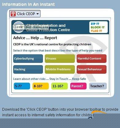 在浏览器使用界面的顶端,这款名为Click CEOP的插件可以通过网络自动更新,为儿童提供合适的上网指导,通过规范用户的行为达到净化网络空间的目的。