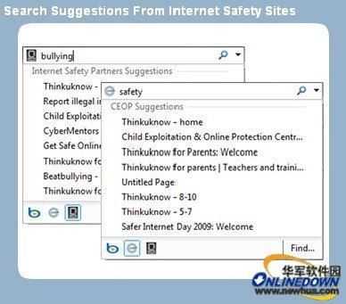 这款为青少年打造的IE 8中,搜索联想词和书签收藏内容经过严格的审核,去除一些不适合该年龄阶段用户的词汇,比如暴力、色情等内容。其中5-16岁儿童被分为三个年龄层,年龄层越低,敏感消息的过滤就越强大。另外,还提供家长和教师模式,方便管理未成年人的上网习惯。