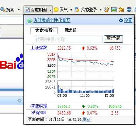之后在工具栏上,就会出现“百度财经”的按钮。在这里你可以随心订阅、查询股票代码。
