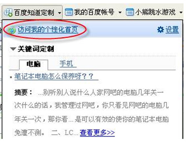 据了解,百度个性化首页与工具栏互通后,个性化首页上的每个widget都能添加到工具栏上。