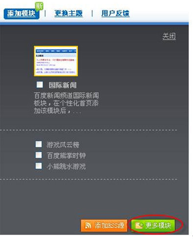 如果希望添加其他的功能,选择下面的“更多”,进入模块分享库里添加(地址:/yc_uploadfile/2010162953253.jpg" style="border-right: black 1px solid; border-top: black 1px solid; border-left: black 1px solid; border-bottom: black 1px solid" alt="" />