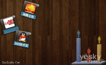 我们可以通过点击“●●●”按钮来进行快速对话,当收到好友信息时“●●●”将变成红色“●●●”来提醒。通过点击桌面好友的头像,可以展开操作栏,进行发送邮件、打开对话窗口、关闭桌面好友图标的操作。值得一提的是,图标可是分男女的哦,当好友资料中性别为男时,拖动出来的好友桌面图标是打着领带的男士形象。当好友资料中性别为女时,拖动出来的好友桌面图标则是女装形式。