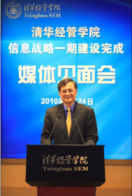 清华经管学院院长钱颖一教授表示:“清华经管学院信息战略项目一期建设的完成,标志着学院信息服务的整体实力上了一个大台阶,与世界领先商学院的距离大大缩小。这是学院采纳当今最新信息技术,把信息战略作为学院核心竞争力的一个重要突破。它必将有效地凝聚学院与教授、学生、校友、合作伙伴等各类用户的关系,从而全面提升学院的办学能力。”