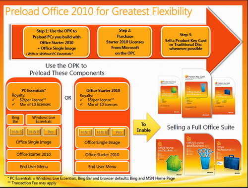 PC制造商也可以选择不安装这些产品,但是他们预装Office Starter 2010的价格将增长至每份5美元。收费标准的高低很大程度上取决于预装微软产品的多少。