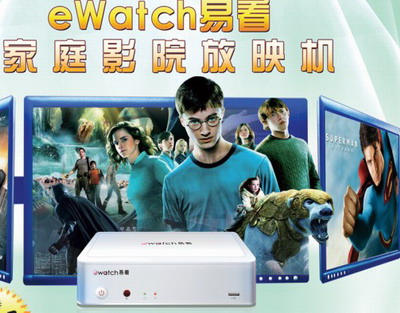 “eWatch易看”是网尚文化自主研发的全球新一代家庭影院播放机。使用电脑/电视机连接“eWatch易看”能在线点播网尚文化海量的正版影视节目,不需要联网支持时,也可直接播放该设备磁盘中存档的影视文件。
