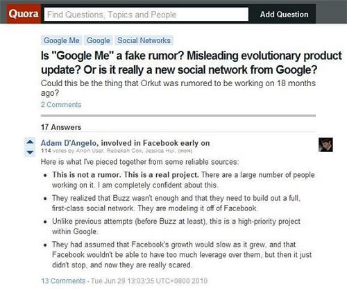 曾任Facebook技术主任的Adam D’angelo在Quora网站上表示,“这不是谣言,有很多人正在进行这项计划。这点我很确定”。