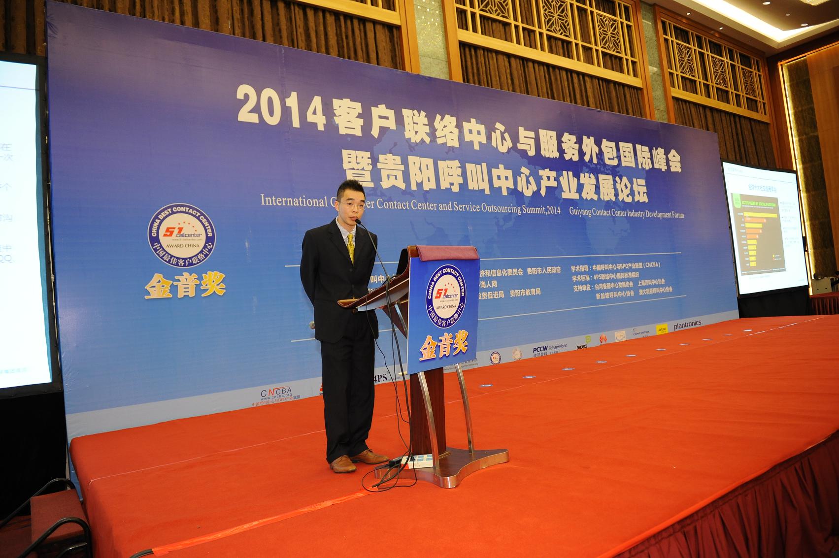 近日,由呼叫中心与BPO行业资讯网(51Callcenter)、贵阳市人民政府主办,工业和信息化部、人力资源和社会保障部、贵州省人民政府等相关单位指导与支持,4PS国际标准作为评测标准的《“金音奖”2014中国最佳联络中心与CRM颁奖典礼》近日在贵阳圆满落下帷幕,来自亚太地区的数百名高管参加了峰会典礼。国家工信部软件服务业司史惠康、贵州省委常委/贵阳市委书记陈刚、贵州省人民政府副省长王江平、贵阳市人民政府市长刘文新、副市长高卫东、中国呼叫中心与BPO产业联盟(CNCBA)主席颜晓滨、CNCBA副秘书长蒋建军、51Callcenter执行总裁唐爱琴出席了相关活动与会见。2014“金音奖”中国最佳客户联络中心与客户服务获奖榜单同期发布,中国中央电视台做了采访报道。