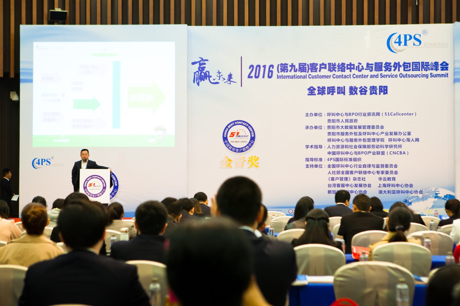 近日,由51Callcenter、贵阳市人民政府主办,国家人力资源与社会保障部劳动科学研究所、中国呼叫中心与BPO产业联盟(CNCBA)、全国呼叫中心行业自律与监督委员会指导,4PS国际标准作为评测标准的第九届《金音奖-2016中国最佳客户联络中心颁奖典礼》等系列活动在贵阳圆满落下帷幕,来自亚太地区的数百名高管参加了峰会典礼。本次峰会从战略、流程、人员、平台、绩效等五个维度对行业发展及运营水平进行了对标与研讨。