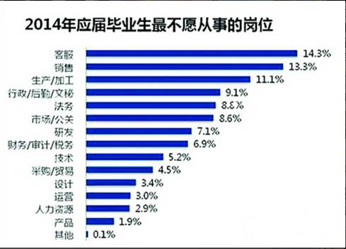 近期看过一篇文章,中间的一组数字不禁让我惊愕:在“2014年应届毕业生最不愿从事的岗位”调查中客服行业占比14.3%居第一列,销售行业占比13.3%,排列第二。 从呼叫中心行业出发而言,最适合员工的年龄阶段也在25岁以下。综合以上数字看来,未来呼叫中心的招聘及留存将极为的严峻。