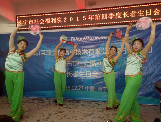 近日,北京互联企信信息技术有限公司南宁分公司(Teleperformance China)为南宁社会福利院的老人们举行了一场别开生面的长者庆生会。有精彩的文艺节目,美味的蛋糕,水果小吃,还准备了有趣的小礼物等等,TP的员工努力一心,给老人们带去了欢声笑语。多余话不多说了,快来看看现场的照片吧~