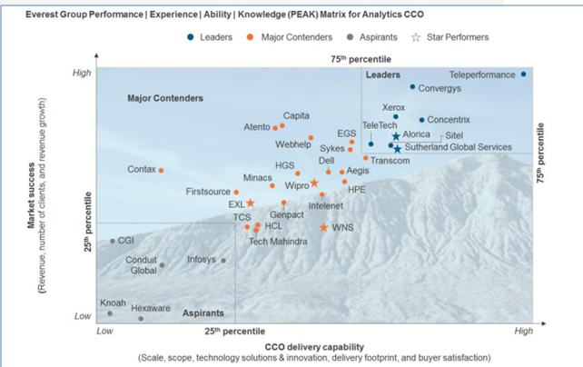 2016.6月,巴黎---外包全渠道客户体验管理的全球领导者Teleperformance,今天宣布,在Everest 集团的“PEAK Matrix™”评比中获得高分,从而在外包联络中心(CCO)领域中获得全球领导者称号。这标志着Teleperformance通过这一杰出的咨询和研究公司的,显示其在顶级外包联络中心提供商当中,连续第四年被公认为领导者。这也充分说明Teleperformance继续作为行业无可争议的全球基准。