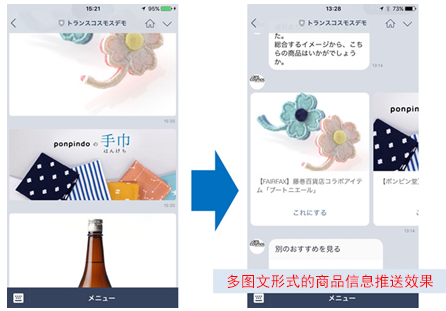 transcosmos集团(以下简称 transcosmos;总部:日本东京涉谷区;总裁兼COO:奥田昌孝;东证代码:9715)自2月起推出基于LINE平台的“Messenger App电子商务动态对话服务”,能够实现以多图文形式,向不同的顾客自动推荐合适的商品。