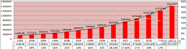 图1.1 2002-2015中国呼叫中心坐席总数与发展趋势(来源于第三方媒体)
