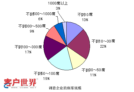那么和刚才杂志社调查的结果是一样的。这个数字又是政府方面调查的结果,他们调查的很细,对很小规模的,比如说1-4人的呼叫中心都进行了调查,并且看到这种小规模的呼叫中心还占有很大的比例。可以看到,10人以下的呼叫中心可能在这个结果里面占了基本上高于50%,所以可能得到一个结论,就是在日本小型的呼叫中心非常多。