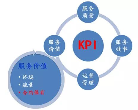 呼叫中心的KPI指标考核指标一般主要分为几个方面,包括服务质量、服务效率、服务价值、运营管理,而服务价值维度的考核区分为终端销量、流量销量及合约保有三个方面。