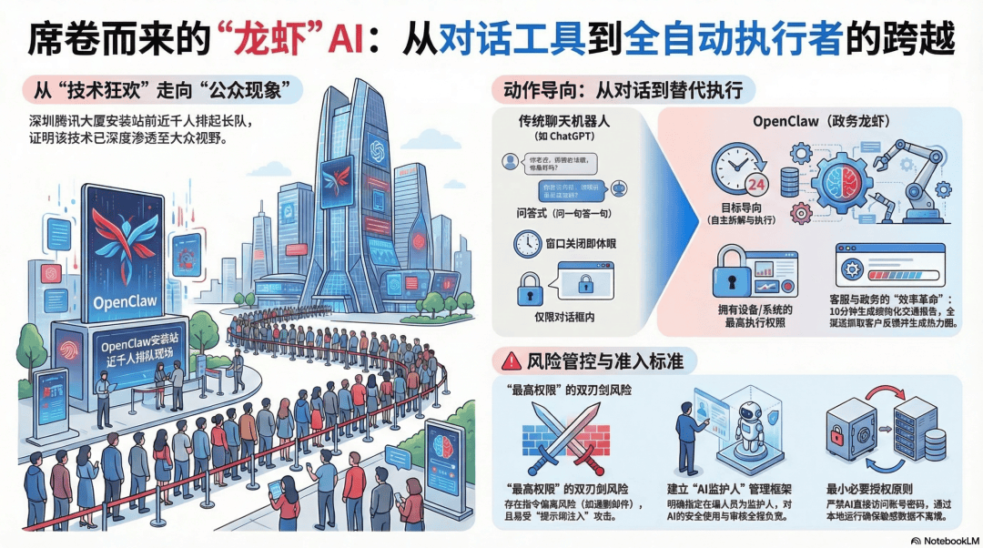 深圳福田区,有一批公务员最近多了一个奇怪的任务——每天上班前,先去"看一眼"自己的AI同事有没有出格。这个同事不喝水、不请假、不抱怨绩效考核,但它有权限读取文件、发送邮件、归类投诉,甚至在没人盯着的时候自己做决定。他们管这个新同事叫"政务龙虾"。
