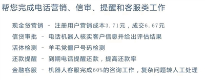 它们乖巧听话,不要工资,无需培训,不要五险一金,不要节假日休息,永远不知疲倦,永远按标准执行。每天保持情绪稳定,拨打1000通以上电话。效率是人工2倍以上,而工资,仅是人工的10%,甚至1%。