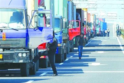 此时,距离事发地约30公里处的洋山保税港区入口前,已有许多集卡排队等候通行。该段高速公路共有3根车道,最靠左侧的一根车道已被打通,供应急抢险车辆及救护车、消防车等进入。
