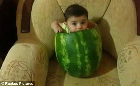 T|T [导读]美国视频网站YouTube新发布的一段“西瓜宝宝”视频最近爆红:一个挖空的大西瓜被放置在一部沙发上,里面钻出一个黑发小孩,因为西瓜太大,孩子爬不出来,但是他很享受的啃着西瓜的边缘。