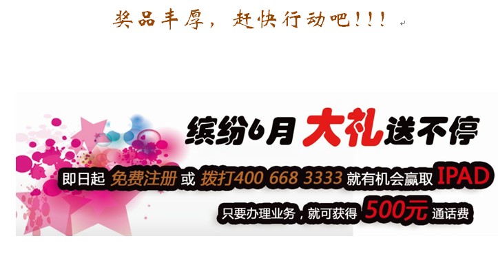 (2)只要是办理业务,就可获得500元 话费。 我们会在活动结束后进行统一抽奖,幸运者将会获得IPAD1台。