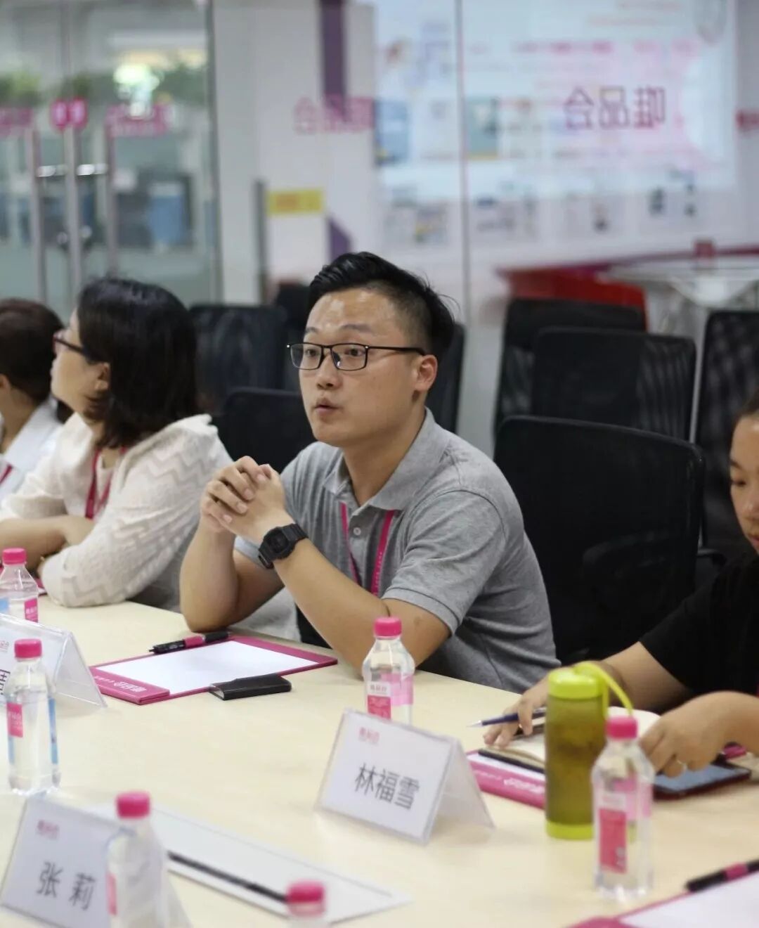 接下来双方开展了愉快的沟通交流会议,会议伊始,客服中心高级后台支撑经理周恒对来访的各位来宾表示欢迎,并对唯品会及唯品会客服中心作简单介绍。市政务办12345热线中心罗剑刚副主任则表示,这是12345热线中心首次来到企业进行交流,非常开心来到唯品会。