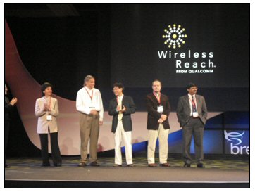 同时,作为“无线关爱”计划brew应用基金的获奖者,在伊丽莎白舞厅接受了来自高通的最佳公共服务应用奖颁奖(颁发给为在全球范围内促进欠发达地区经济和社会发展而做出积极贡献的最佳应用)。同时获此支持的还有印度Tata 咨询服务公司、美国BeWell移动技术有限公司、美国加州大学伯克利分校和印度尼西亚万隆技术学院。