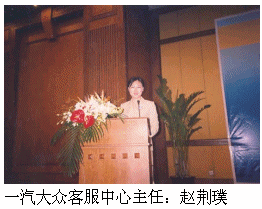 一汽大众客服中心主任赵荆璞由于其在客户服务方面的杰出贡献被评为"2005中国最佳呼叫中心管理人",并作为获奖代表在大会上发了言。?