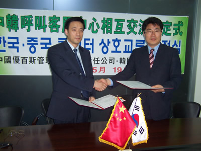 5月19日,在中韩客服中心相互交流协定仪式上,北京优百斯管理咨询有限责任公司与韩国光州女子大学签订了战略合作协议,同时也标志着双方会更加紧密的合作,为促进中韩客户服务中心的交流和发展起到积极的推动作用。
