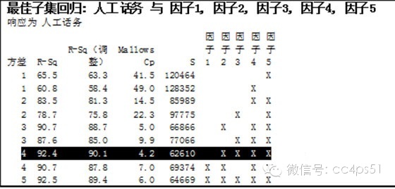 图2:案例五、最佳子集拟合回归模型