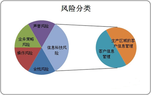 要对信息以及风险进行管控,首先我们要了解呼叫中心在生产运营中具体有哪些风险点。一般可分为五大类:信息科技风险、合规风险、操作风险、业务策略风险以及声誉风险,而与客户个人信息有最直接关系的就是信息科技风险。