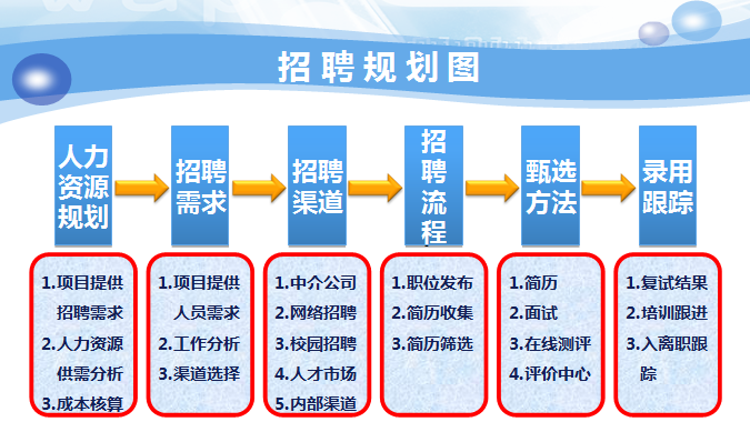 完成呼叫中心的招聘工作仅仅在前端选择对的渠道并不等同于就完成了招聘工作的全部,如何将合适的人选入到适合的岗位上来是我们工作的最终目标,有效的招聘规划及流程是保证人员到岗的重要环节。