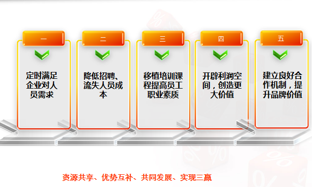 呼叫中心人员招聘工作的完成质量,对于呼叫中心的运营起着至关重要的作用,它直接决定了项目人员的稳定性、项目的整体收益、人员素质构成等,继而决定着项目的正常运营以及整体KPI指标的达成。为了确保各项目人员需求,一方面需加强网络招聘、现场面试、中介委托、内部推荐等传统的招聘渠道优化和选择。一方面需寻找新的合作模式从而确保人力需求的供给,加强企业与学校的合作,教学与生产的结合,校企双方互相支持、双向介入、优势互补、教学共享。校企合作可以在人员质量、稳定、成本、忠诚度等方面起到较好的控制,是日后我司满足合作方对于人员大量需求、促进合作、培养生产、管理、服务第一线专门人才的重要途径。