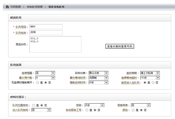呼叫中心系统的队列管理功能不仅满足了一般意义上的队列管理,同时也为分布式服务提供了很好的支持。通过队列管理功能,可以很好地整合各个系统之间的人力资源配置。
