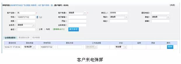 提供来电弹出(SCREEN POP),实时显示来电客户的详细资料