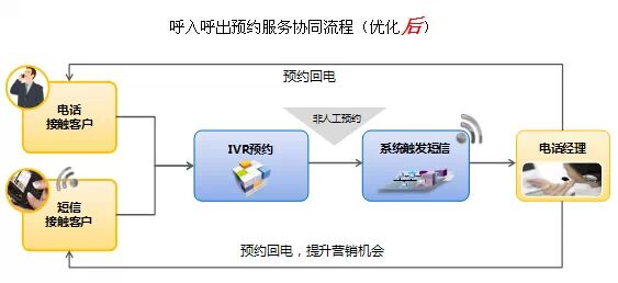 中高端客户对电话经理的信任不仅体现在呼出接通率、受访率、营销推荐成功率等指标明显提升,并且客户对电话经理提供服务的关注度和重视度不断提高,比如越来越多的客户在遇到移动业务问题时会主动联系电话经理咨询;越来越多的客户在接到电话经理服务提醒短信时会主动联系电话经理进行了解……然而,客户呼入10086并不能直接联系到电话经理,而是首先通过IVR语音引导进入到VIP和中高端热线人工服务座席,再由座席代表记录客户需求,并创建预约任务告知电话经理,电话经理收到预约服务短信提醒后给用户回电,呼入呼出协同流程繁琐,预约工单周转时间较长(如图1)。