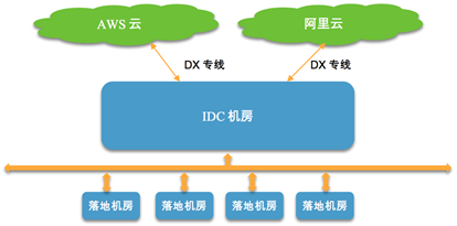 3、应用云IaaS服务与IDC机房由DX专线组成混合架构云;