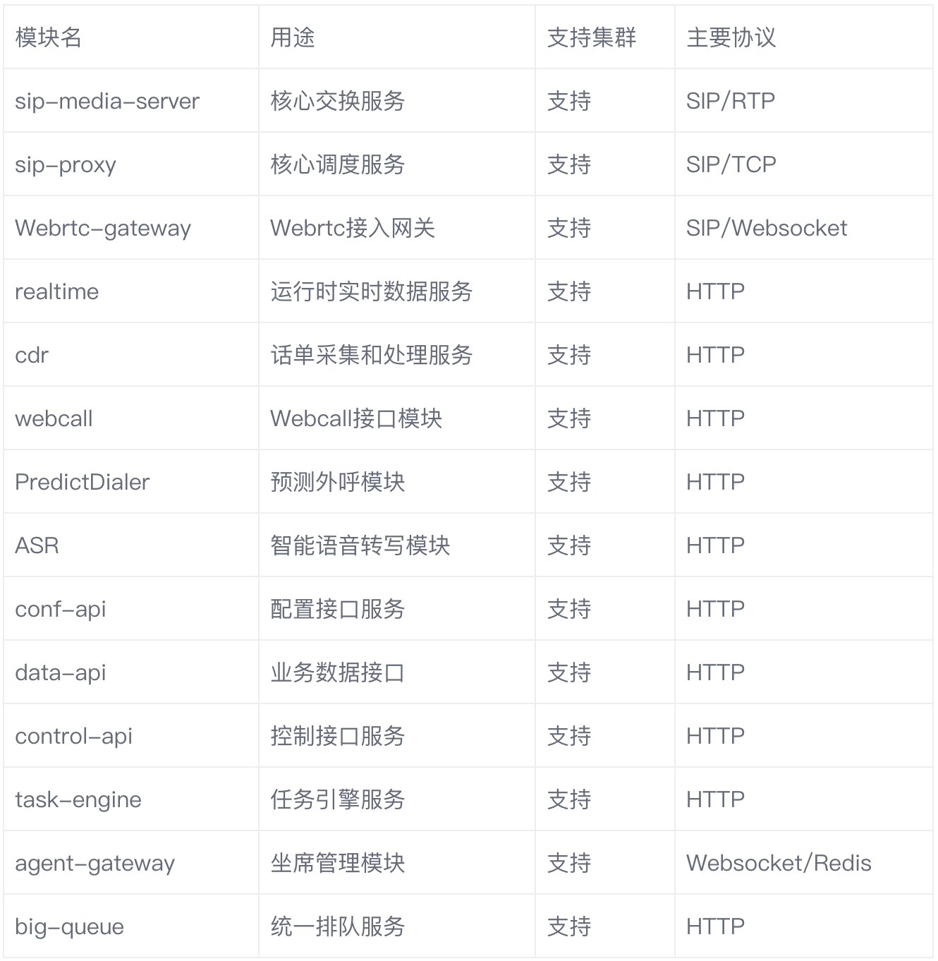 除了整体生态系统层面做了解耦和面向微服务架构的拆分工作,智能云呼叫中心核心交换平台也进行了大量微模块拆分。共计拆分了25个子系统,其中主要的子系统如下:
