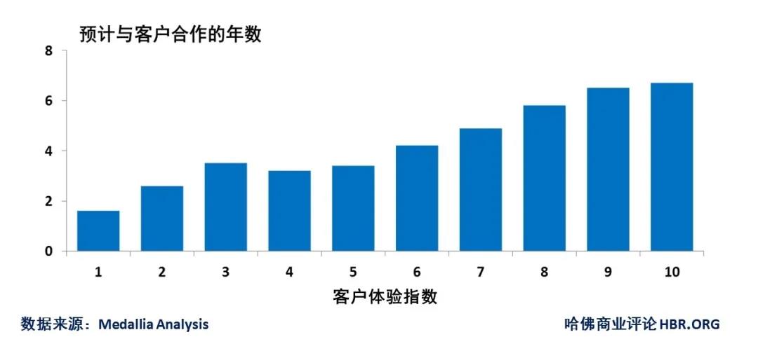 即使那些只喜欢看财务报表的管理者,也不能无视服务对企业价值增长的意义,虽然服务无法带来立竿见影的回报,却能带来长期的增长,让客户合作时间更久(图7),购买金额不断增长(图8)。可惜,急功近利的人很难看到服务的长期价值。