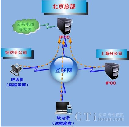 IPCC系统采用全分布式结构,可以实现多点的、虚拟统一的客户服务中心,座席人员不必拘泥于地理位置,在有网络环境下随时随地可以接入呼叫中心为客户提供服务,实现了真正意义上的移动办公。