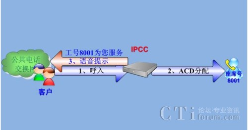 ACD功能即自动呼叫分配系统, 负责将客户电话自动分配到座席电话上。