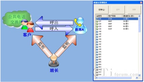 是提供给班长的一个监控的平台,并能对座席员工进行监听强插强拆等功能,加强了公司对服务的有效管理,保证了服务的质量。