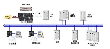 华胜天成在分析客户需求的基础上,最终选用了Avaya S8800用户交换机,这是最新一代多业务程控电话交换系统,整体设计采用了目前业界最新的技术成果,既充分考虑到了对传统电话交换技术的支持,又充分采用了最新的标准和技术。CTI中间件采用Avaya的IC交互中心,座席软件既支既持C/S架构,又支持B/S架构,简体中文和弹屏,及各种业务系统集成。