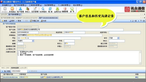 讯众通信“云通讯”呼叫中心软件的客户资料弹屏功能: