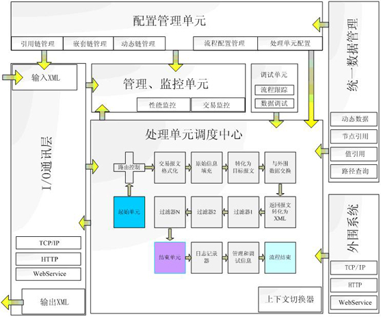 本次整合平台系统的应用开发是基于恒融Huroware基础平台,采用构件化的设计模式,业务构件的设计采用面向对象的设计方法,各构件间完全独立,各构件数据交换采用统一接口方式,与各业务构件内部逻辑完全隔离。各业务构件与展现层采用jms、webservice、ajax、xml等技术开发出的企业数据总线(ESB)进行数据交换。业务构件的功能设计采用规则引擎技术,可通过xml配置方式实现业务的添加、维护,方便系统上线后的需求变更、维护开发工作。