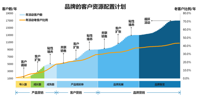 客户关系管理(CRM)实质是辅助与品牌发展的客户资源配置计划,目的是构建品牌的可持续盈利能力,体现为客户数量和老客户比例两个指标,一个对应体量、一是个对应质量。为了体现时效性和规避周期性(季节性)因素,可以取年滚动指标。