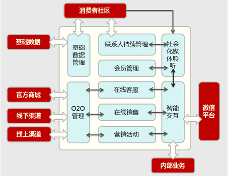 微信团队一直强调企业微信的主要功能是服务而非营销工具,微信5.0将公众号区分为服务号和订阅号,10月底平台为服务号开放高级接口,包括客服接口、网页 授权等,可见服务是微信公众号的核心价值和方向。前一阵很火的陈坤公众号向我们直观地展现了以会员为核心的公众号的前端,而它的后端就是CRM。那么,基 于微信公众平台开放接口的微信CRM应该怎么做?请看本文详解。