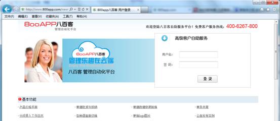 近日,国内领先的在线CRM厂商八百客最新发布站点功能,站点功能是八百客给企业的客户提供的一个自助服务平台,客户可以从企业的官网登陆到800APP系统,随时查看下载一些信息,还可以建立订单,功能强大,方便快捷。